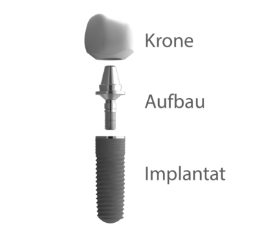 Ein Implantat ersetzt die fehlende Zahnwurzel direkt und trägt den Zahnersatz dort, wo der Zahn zuvor verankert war. Dadurch müssen keine gesunden Nachbarzähne für eine klassische Brücke beschliffen werden und wertvolle Zahnsubstanz bleibt erhalten.